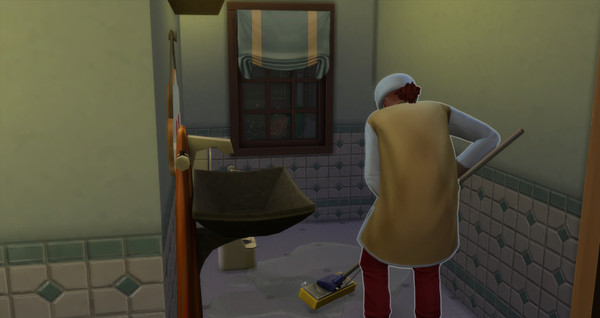 Dann wird die Sauerei aufgewischt, welche diese kaputte Klospülung hier im Badezimmer verursacht hatte. Das mit der Schnappvorrichtung war übrigens ein Scherz. Ich selbst will mich ja auch noch ab und an da drauf setzen können. Und da soll mich bloß nix schnappen wollen.