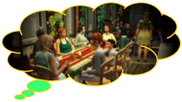 Doch sie fühlte sich zunehmend einsam. Tief in ihrem Inneren kamen immer wieder Bilder in ihr hoch, wo viele Sims glücklich zusammen sitzen, wo gesprochen und gefeiert wird.