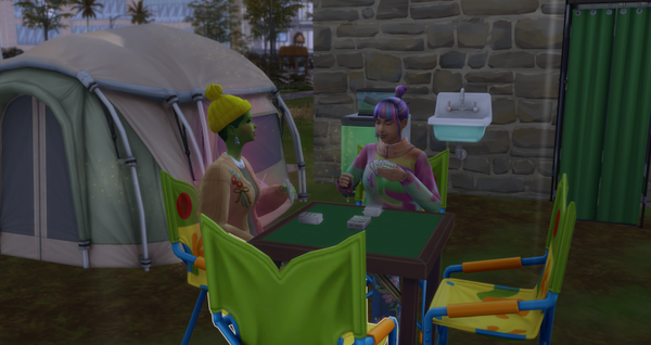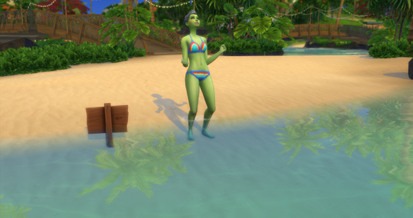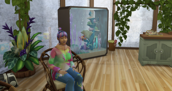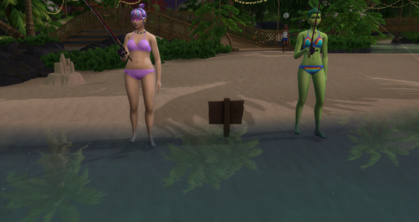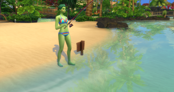 Aber andere Sims fanden den Lockstoff unwiderstehlich. Darum hielt Flora schon sehr streng die Fütterungszeiten ein, sodass kaum jemand das Tortenstück zum Sehen bekam. Die Fasnet-Närrin begleitet Flora auch nach Sulani. Zusammen fischten sie und genossen den schönen Tag.