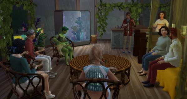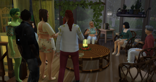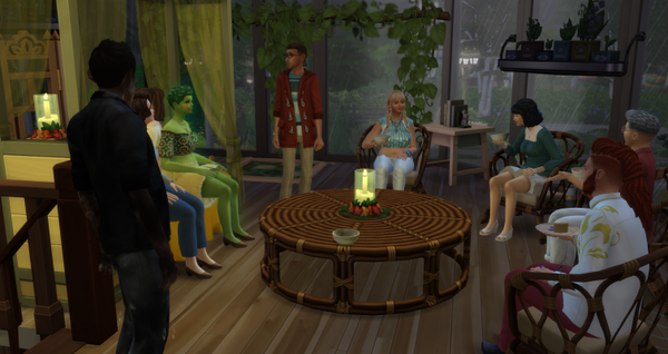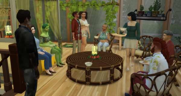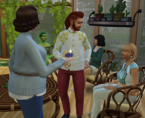 Dies weckte eine Sehnsucht, selbst Feste zu geben und sich mit Sims und Simsinen zu umgeben. Und so putzte sie sich heraus und lud Gäste ein.