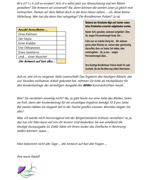 Ich habe WiWo gestartet als Bürgermeister Schnurrhaar noch eine weibliche Katze bei Spiel-Neustart war. Das ist mittlerweile geändert. Aber in meiner WiWo-Zeitung hat Bürgermeisterin Erdnuss weiterhin eine Bürgermeisterin Schnurrhaar mit Zylinder ?? zur Begleiterin. Demzufolge ist Kater Karlo der ohne Hut, der da erschöpft schläft ... und Bürgermeisterin Schnurrhaar trägt das 'Ergebnis' der Erschöpfung bereits heim zu Bürgermeisterin Erdnuss, @Simser51 . Ein bisschen verwirrend, ich weiß ?.