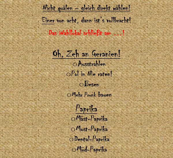 c) Misswahlen in Paprika & Oh, Zeh an Geranien! ? ? & ?