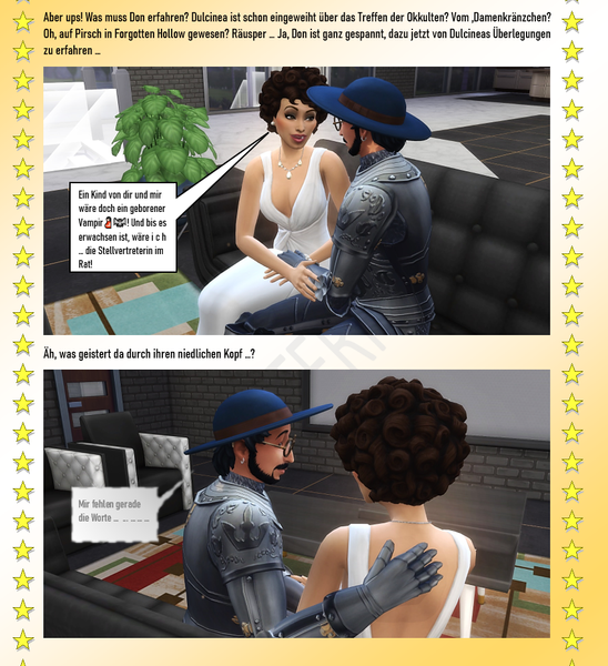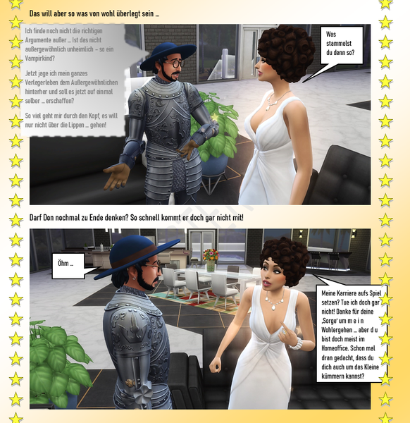 Gemeinsam mit dem Nachwuchs gegen Windmühlen zu kämpfen. - Julchens774 years agoSeasoned AceTja, diese ganze Hin- und Her-Spionage bringt den Haussegen aller Parteien etwas durcheinander, gelinde gesagt ?... oh, ob Don sich wirklich erweichen lässt und ein kleines Vampirchen erzeugt? ??