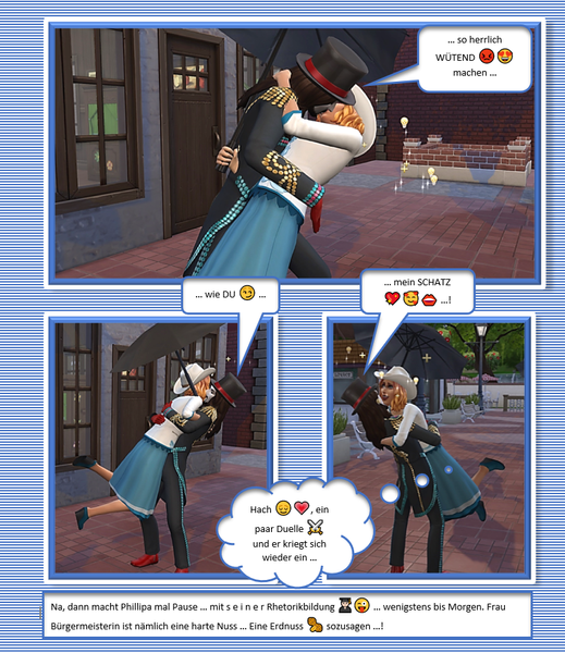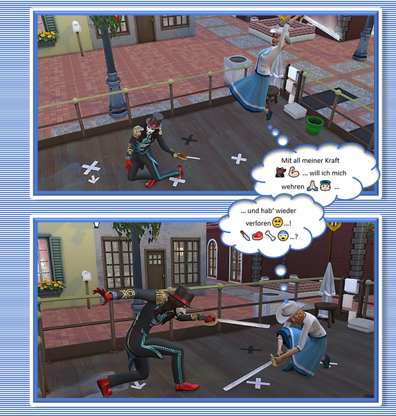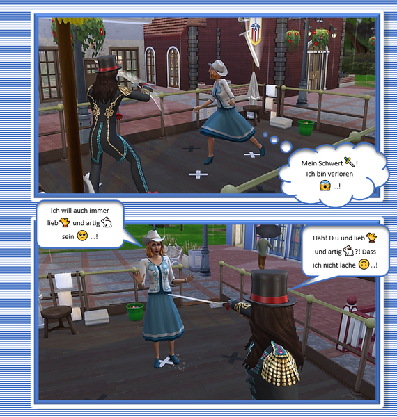 Wow, die Duelle ich hing ganz gespannt an den Bildern und den Kommentaren…. Ein Waffengang mehr und ich hätte mir vor Aufregung die Fingernägel abgeknabbert. Aber beim Happy End bin ich sowas von dahingeschmolzen <3 <3 <3 . Herrlich!