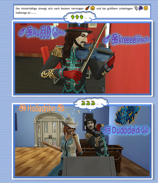 Oh ja, die liebe Geige ich liebe es, wenn sie das erste Mal dieses Instrument spielen. :s Die Kampfszenen hast du großartig umgesetzt und der passende Text einfach genial!