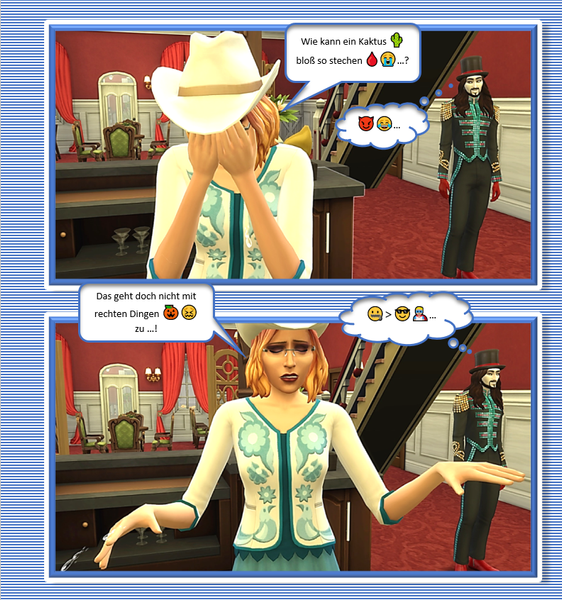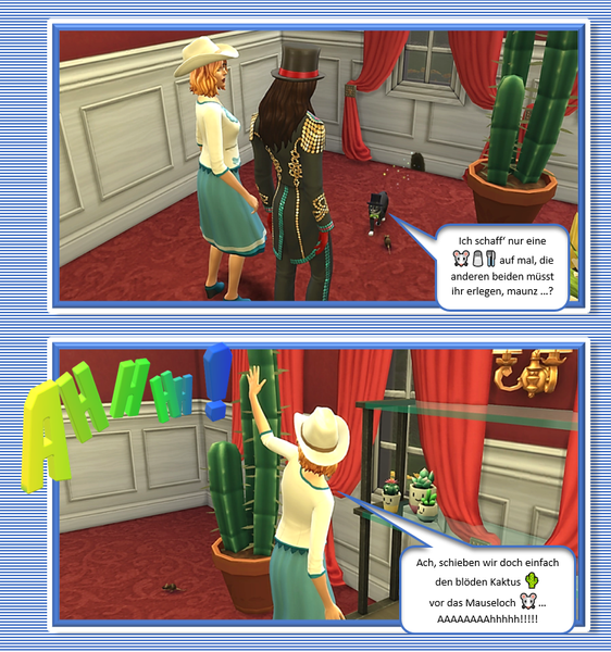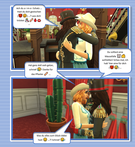 Tja ein Kaktus hat nun mal Stacheln und die wollen nicht verschoben werden. Der Blick vom Hinterhältigen als sie vom Kaktus gestochen wurde. :D Aber dann hatte er doch Mitleid oder wollte er etwas anderes.