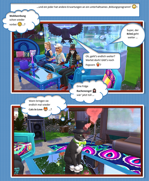 Zum Glück ist Frau Bürgermeisterin Schnurrhaar kerngesund aber eins fehlt ihr ab und zu doch, ein Bürgermeister Schnurrhaar. - Fischreuse5 years agoSeasoned AceJoa, der Hinterhältige hätte noch einiges Wissen können ?, wie sich in nächster Zeit noch zeigen wird, @Simser51. Wenn das leichter ginge mit den Filmen ?, gäbe es sicher schon Cats in Love ? oder der Bürgermeisterin Wirken und Leben ??. Noch ist Windywood ? nicht geboren. Oder wäre es eher Wollywood ??