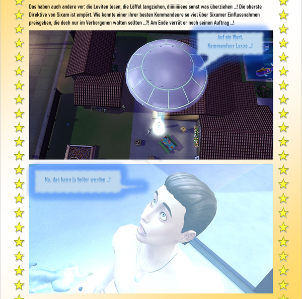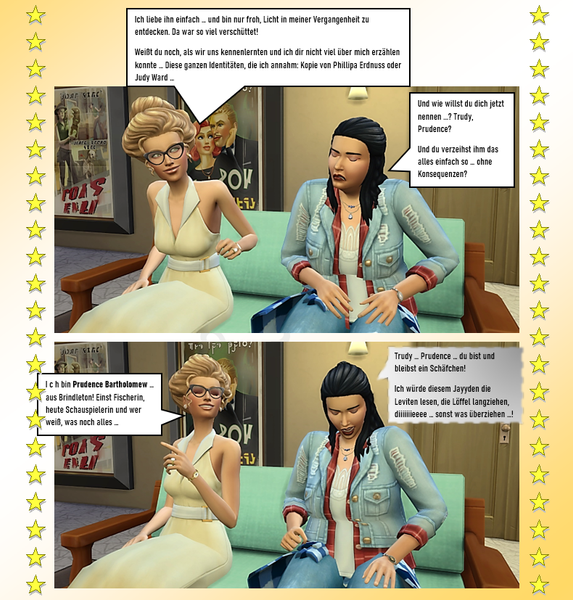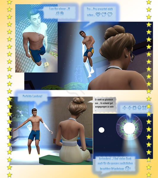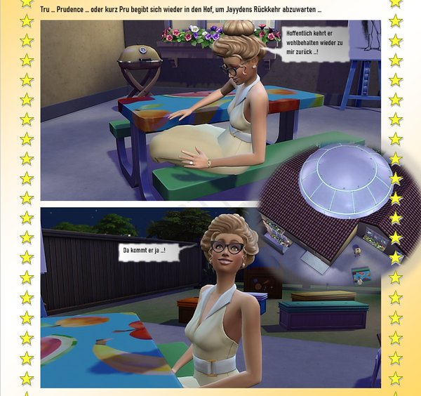 - PhillipaErdnuss5 years agoSeasoned Ace@Reuse Hach, das war wieder spannende Lektüre. Endlich weiß ich mal, was da so abgeht, wenn ein Ufo einen Sim abholt. Ich glaube ich sollte in meinen Nachbarschaften mal genauer hingucken wer denn da so alles abgeholt wird.... Evtl. handelt es sich da ja auch um Mitarbeiter der Obersten Direktive von Sixam? Ja Tru...Pru muß jetzt herausfinden wer sie denn tatsächlich ist. Nicht die heutige Trudy, nicht die damalig Prudence.... irgendwie eine Mischung aus beiden, oder? Bin mal gespannt!