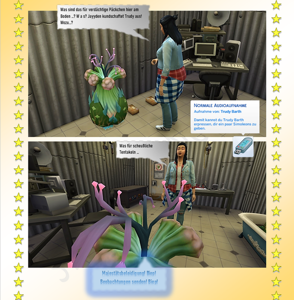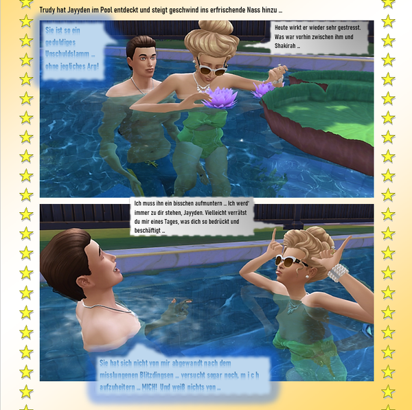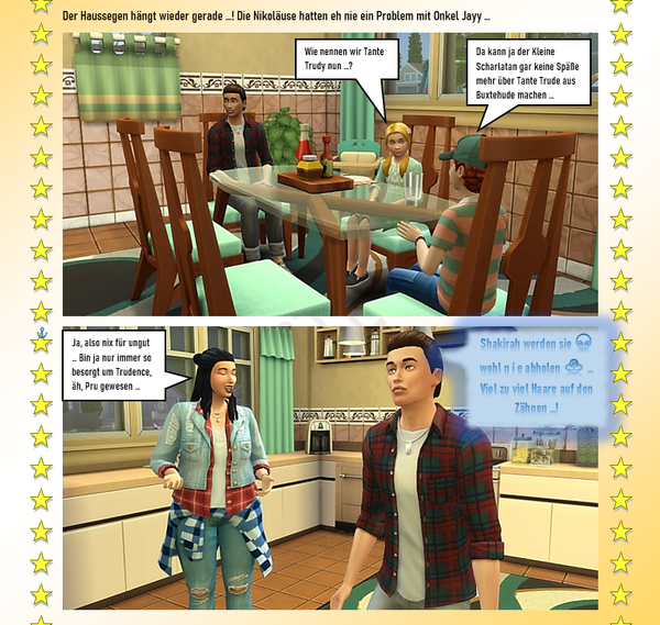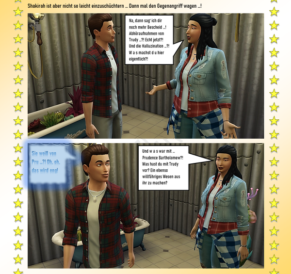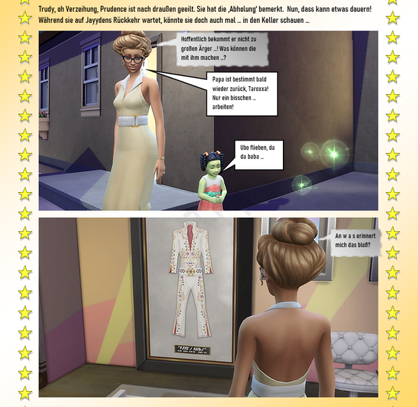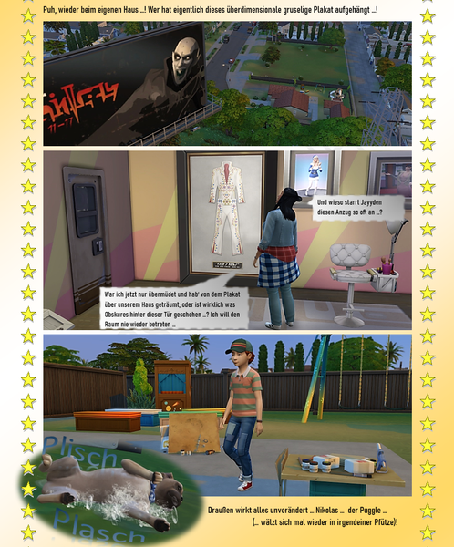 In Brindleton hat doch Prudence gewohnt, oder? Wunderschönes Haus. Oje jetzt kommt die Halbwahrheit auf den Tisch. Doch noch einen kleinen Aufschub aber es sieht nicht all zu gut aus. Super erzählt tolle Geschichte wieder und natürlich dazu die passenden Bilder! - PhillipaErdnuss5 years agoSeasoned Ace@Reuse schon als ich Shakira in Jayydens Raum sah, überkam mich ein fürchterliches Gefühl.... ich wollte ihr nur noch zurufen „Hau ab da, das ist gefährlich... wahrscheinlich kommt Jayyden gleich zurück. RAUS DA!“ aber nein, sie hat weiter fotografiert.... ich war froh als sie da heil wieder raus war. Aber diese Verräterpflanze..... Mist... Und das Plakat ist ja wirklich gruselig.