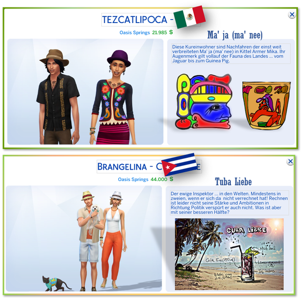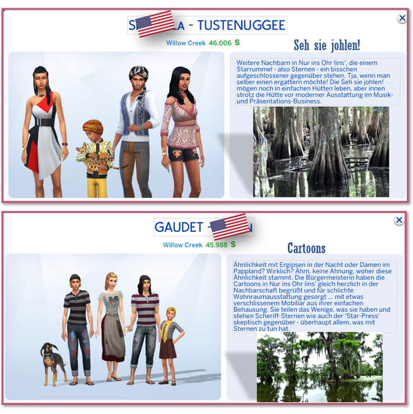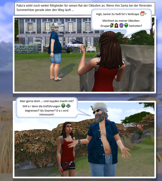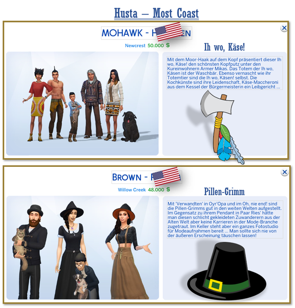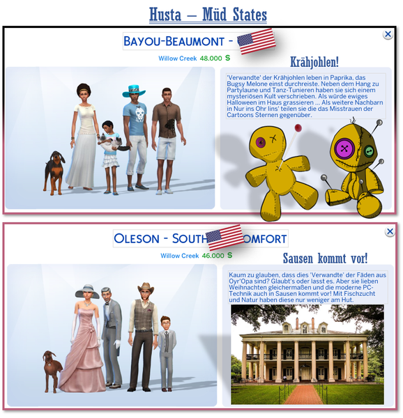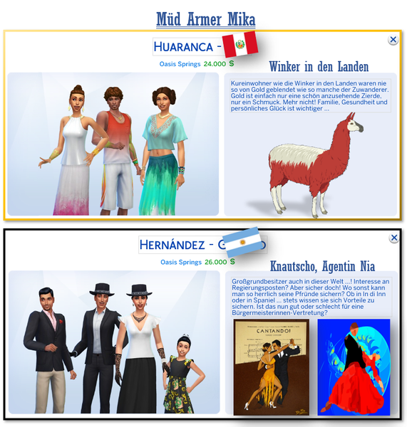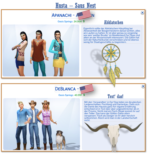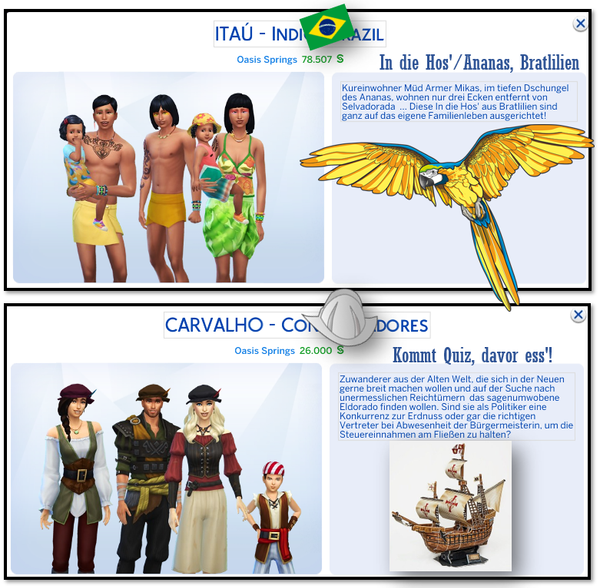 Coole Story! Ich merke dass ich zu wenig mit Okulten Sims Spiele/ resp. Aliens. ^^ - Hoppel7855 years agoSeasoned AceIch würde gerne die Familie Qajak Inuk - Im nu fit nach Sulani schicken. Da sie bisher nur Schnee und Eis kennen, könnten sie sich auch mal einen Sonnenstrand gönnen. Dann die Familie Brown - Pillen Grimm, sie leben ohne jeglichen Luxus von daher könnten sie sich etwas Luxus gönnen. Und auch Familie Gaudet - Cartoons sieht mir so aus als könnten sie einen Urlaub gebrauchen. Dann nehme ich noch die Familie Apanachi - Abklatchen, die erinnert mich irgendwie an "Der Schuh des Manitu". Die Kittel Armer Mika - Latz Theken könnten mal an einem anderen Ort auf Entdeckungsreise gehen. Und zu guter letzt die Carvalho - kommt Quiz, davor ess, mit dem Segelschiff nach Sulani. ;)