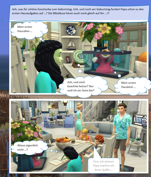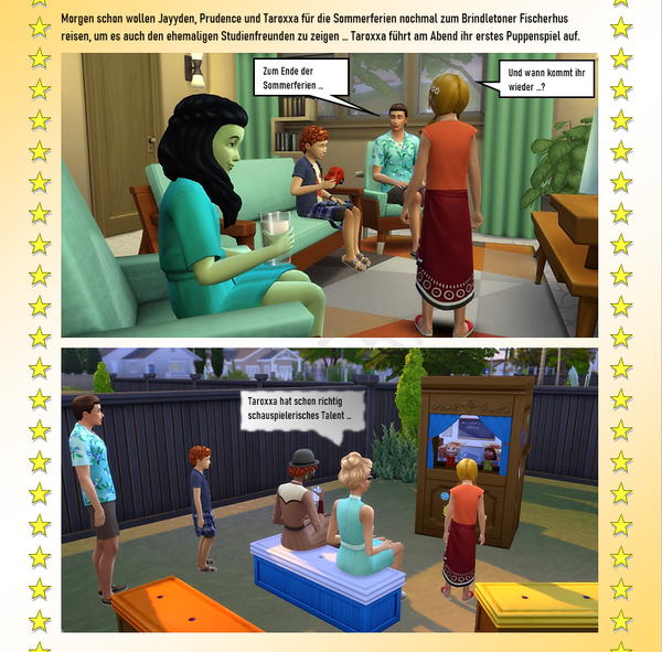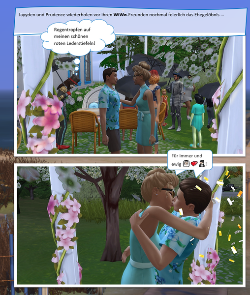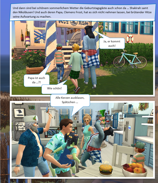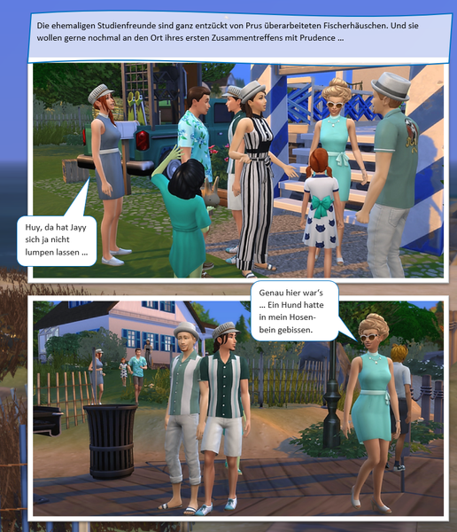 Bis zum Erscheinen des windigen Blattes sind in der Regel einige windige Wochen ?? durch die Lande gezogen. Der letzte WiWo-Spielstand endet um die Oster-Zeit ??? und im größten Lock-Down ??, gleich zu Beginn einer wundersamen Rest-Urlaubszeit, die irgendwie anders als gewöhnlich verbracht wurde, wurden die Seiten schon produziert und kommen nur in wöchentlich in Teilen raus. Also, Produktion mitten in Pandemie aber lang vor Nachhaltig Leben ??. Alles noch komplet NAP-frei ?. Meine Sims-Freunde begrüßen sich a l l e gegenseitig mit Küsschen ???. Die kennen noch nicht die Abstandsregel von 2 Metern ???. Die Freundschaften sind alle hoch grün. Hängt wohl damit zusammen ?.