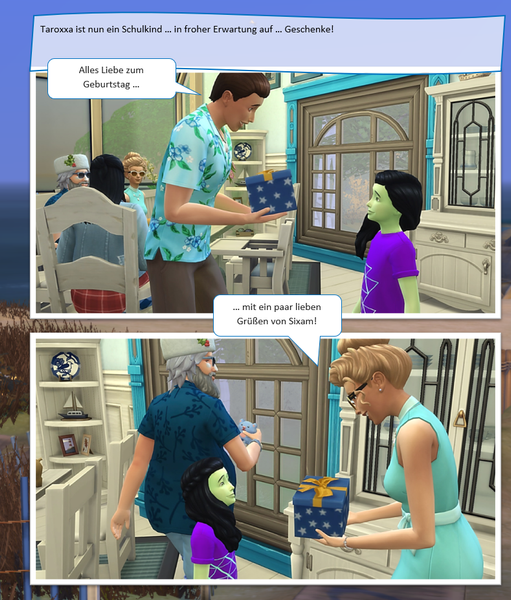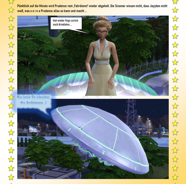 Don El Artichocke hat seinerzeit einen voll funktionsfähigen Wurmlochgenerator ?? geschenkt bekommen, aber selber nie die Wissenschaftskarriere ????? durchlaufen. Dann steht noch für die Bürgermeisterin eine voll funktionsfähig ausgebaute Rakete ? in Flussland bereit. A l l e Sims können also jederzeit problemlos nach Sixam ?? hin und her reisen.