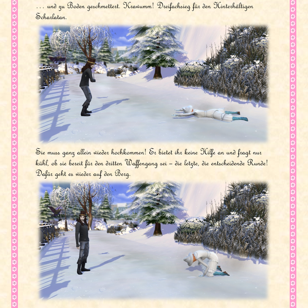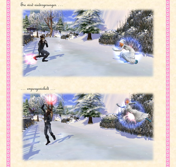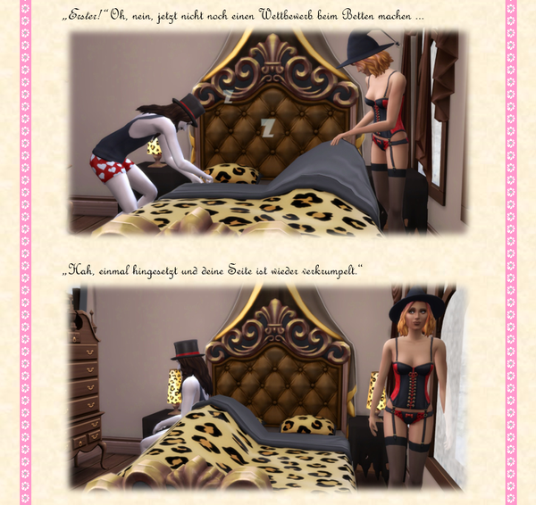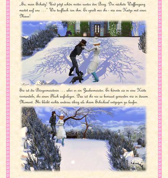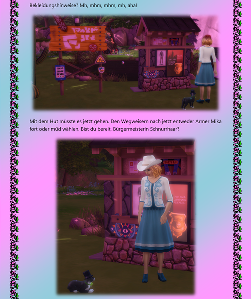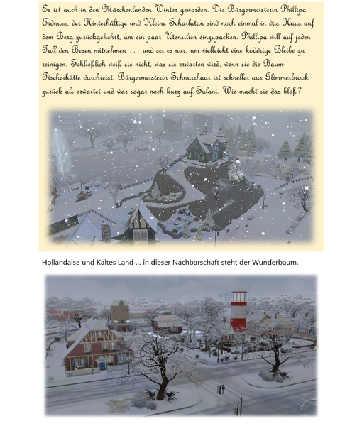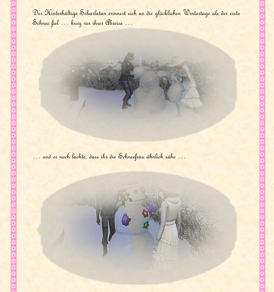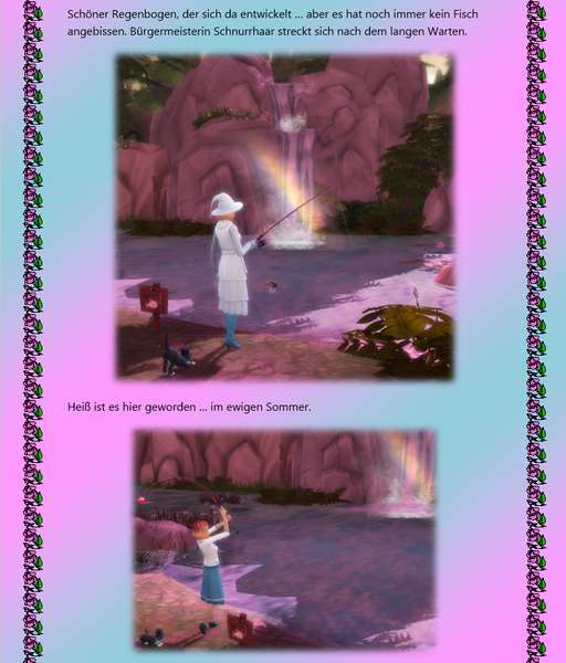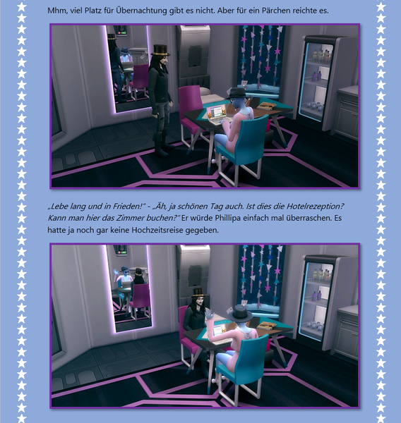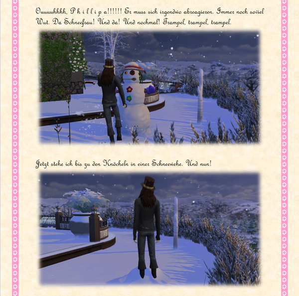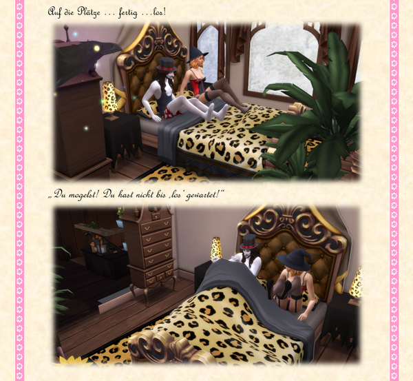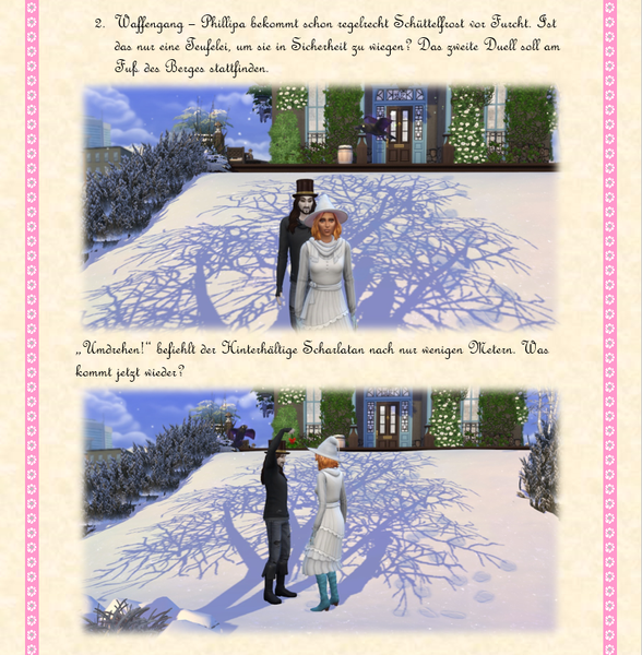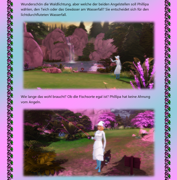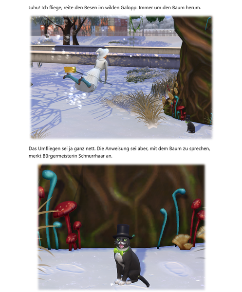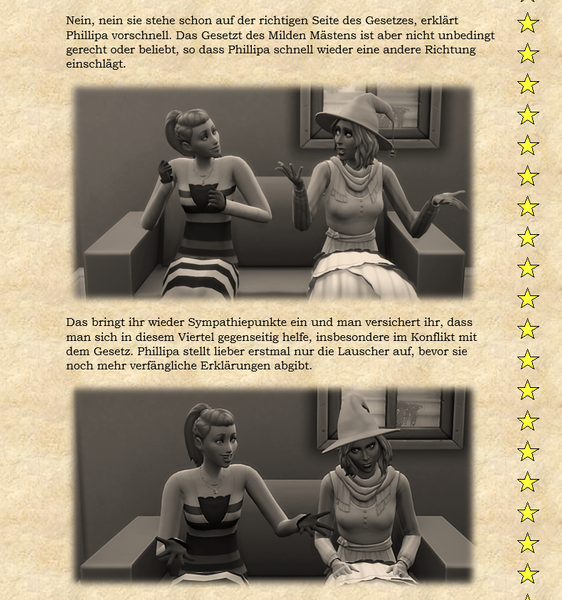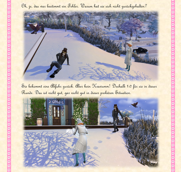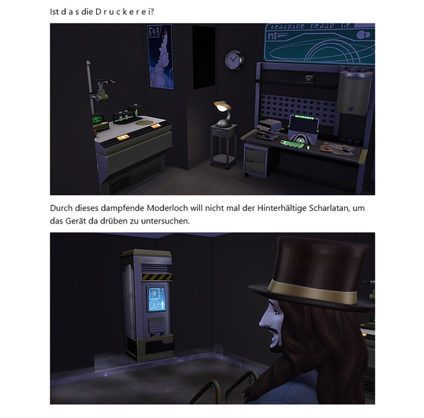 Der Vorteil von Sims 4 zu seinen Vorgängern ist die Galerie, über die sehr viel und sehr leicht geteilt werden kann. Andere 'Mitspieler' wie z.B. Phillipa Erdnuss, der Hinterhältige Sharlatan, der Redaktionsgeist Spionelfchen Naseweiß, Shakira Bashira und der Puggle-Fuchs sind Figuren von 'Zeitungsleser' bzw. das Konterfei ihres Profilbildes wie Quarre, das Entchen. Der Nachteil von Sims 4, der überhaupt diese 'Zeitung' in Leben rief, ist die Käferplage und die verzweiflungswürdigen Überarbeitungen zeitweilig. Das konnte ich irgendwann nur noch auf die Schippe nehmen oder Sims 4 sein lassen. Mittlerweile basteln sich absurde Geschichten um die Protagonisten.