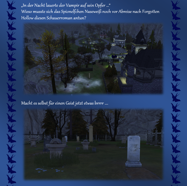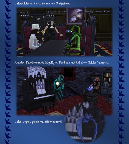 Als nächstes sollte jetzt aber erst einmal das Spionelfchen Naseweiß noch einen Landstrich untersuchen, der allgemein als etwas schaurig gilt ... in der hoffentlich richtigen Annahme, dass ein Vampir einen Geist ... nicht ... anzapfen kann ... >:). Wir werden sehen ... - Fischreuse6 years agoSeasoned Ace