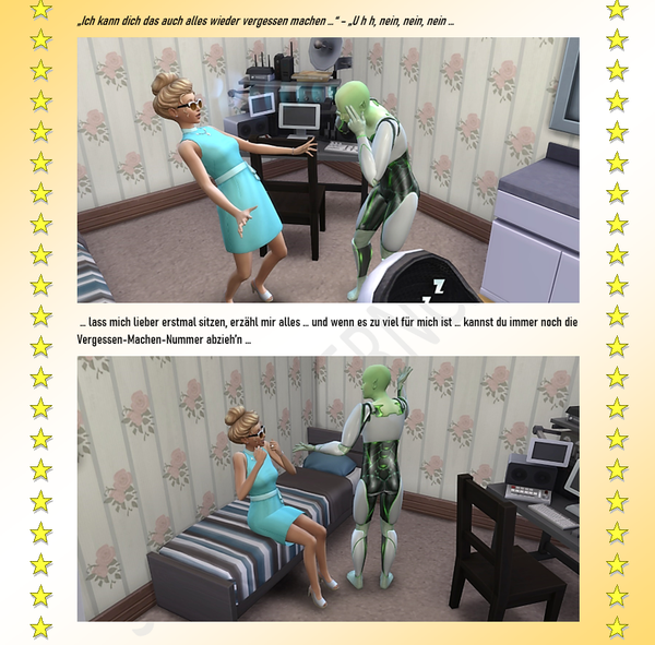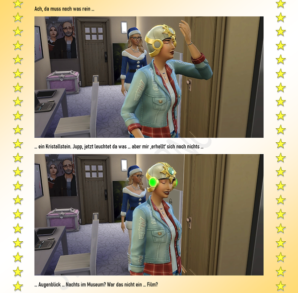 Inhaltlich ... weiß ich grad noch nicht so recht ... wo's hinführen soll ... Eher ein bisschen düster geraten, die nächsten Episoden. Vielleicht nichts mehr für hier ...