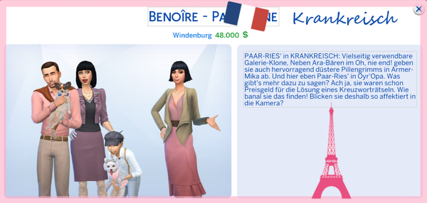 Sind letztendlich zu viele in Oyr'Opa, da passt nicht jeder Haushalt bei WiWo thematisch rein ?. Bis auf die Bestreben oder Karrieren von 'Vampire' ?♂️, 'Inselleben' ?, 'Magisches Reich' ? oder 'An die Uni' ? sind in Oyr'Opa wie auch in Armer Mika alle Bestreben und Karriere-Zweige auf diverse Nationen verteilt. Es gibt also immer einen Bösewicht ? ... und die ganzen Guten ? (?♂️????). Damit werden dann auch alle Funktionen, die Sims 4 hergibt, durchprobiert ?. Auffällig häufig Krankreisch ??? vertreten, fiel mir bei Zusammenstellen auf ? ...
