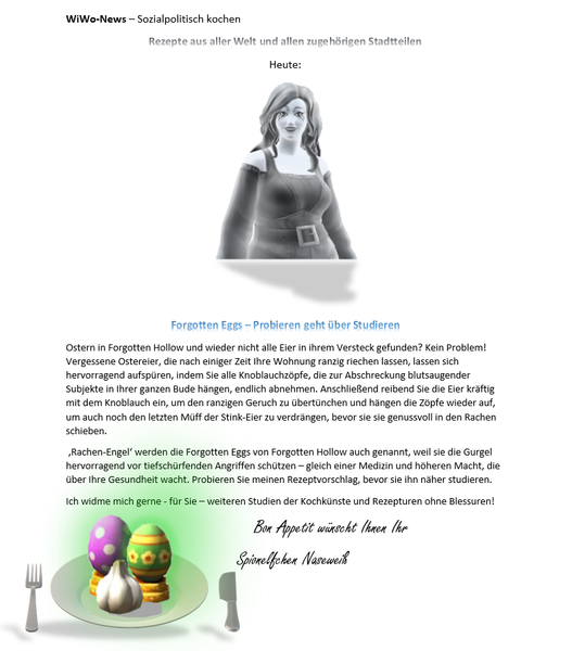 Okay, das Rezept für die vergessenen Ostereier muss ich unbedingt mal ausprobieren. Habe ich doch letztens erst ein Ei nicht aufspüren können, von der Sammlung fehlte mir doch glatt 1 Ei von 9/10+2. :p