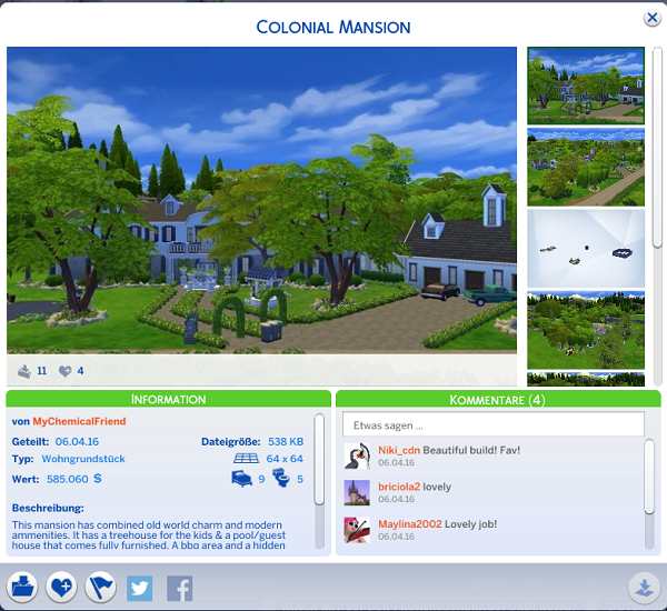 Die Galerie war vorher ein Ort des Spaßes und der Kreativität. Inzwischen gibt es so viele "Leergrundstück-Uploads" und "MAXIS DESTROYED ME"-Kampagnen, dass das Klima sich deutlich erwärmt, aber nicht positiv. Offen gestanden, das Spiel gerät zu einem Protestmarsch. Verständlich; es mangelt bei den Herstellern an der Kommunikation, auf die sie doch Wert legen, wenn es um die Gestaltung von zB Nachbarschaften oder anderen Spiel-Features geht. Vielen würde eine anständige Erklärung reichen; aber kommentarlos und völlig unangekündigt wurden über Nacht alle "CC.s verhängt", auch ich als Nutzerin bin schwer irritiert.
