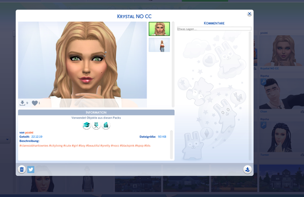 Ich bin Simmerin aus Leidenschaft und seit die Sims 2 mit Begeisterung dabei. Seit kurzem benutze ich auch die Galerie fleißig, baue, lade hoch, fave und erfreue mich seit wenigen Tagen auch am Sims 4 Tray Importer.
