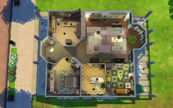 Somit ist der äußere Grundriss des Hauses, der Standort der Tür, die Form des Daches und der Pool vorgegeben und darf nicht verändert werden.