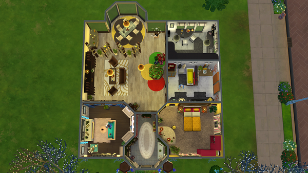 Somit ist der äußere Grundriss des Hauses, der Standort der Tür, die Form des Daches und der Pool vorgegeben und darf nicht verändert werden.