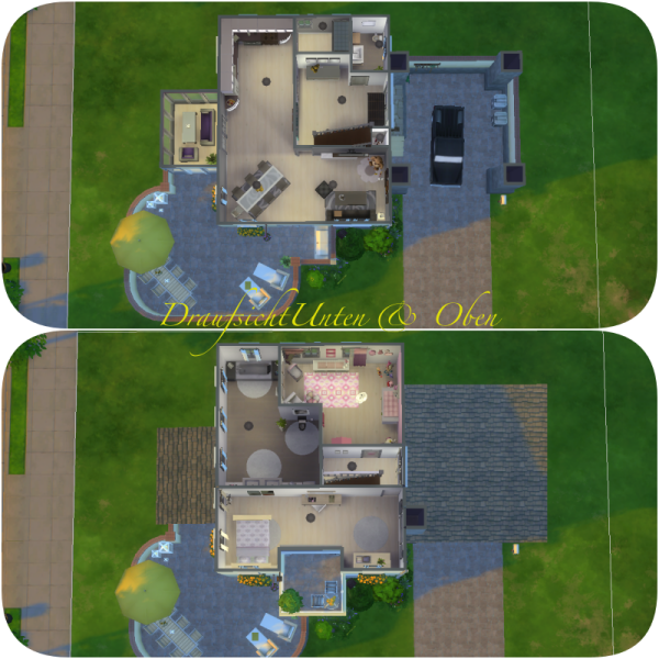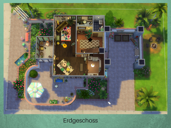 Somit ist der äußere Grundriss des Hauses, der Standort der Tür, die Form des Daches und der Pool vorgegeben und darf nicht verändert werden.