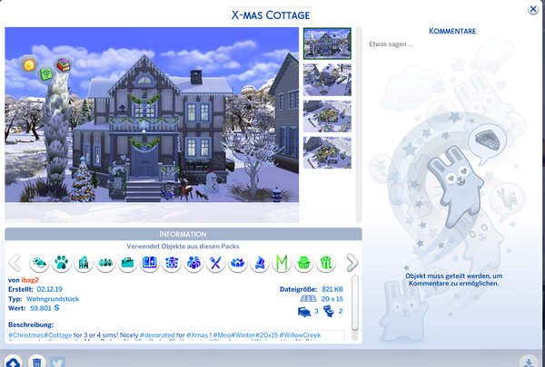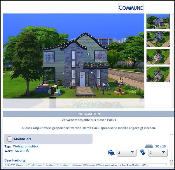 Deine Familie kann in mehreren Variationen sein, das ist für die Challenge nicht relevant. Relevant ist jedoch, dass eine Familie mit einem Kind, beide Elternteile verheiratet, mit 24.000 Simleons startet. Es wird also keine Herausforderung, was den Wert betrifft. Das fertige 20x15 Grundstück darf allerdings den Wert von 22.000 Simleons (inkl. Kaufwert des unbebauten Grundstücks von 2.500 Simleons) nicht überschreiten. Schließlich sollte man nicht das ganze Familienvermögen auf den Kopf stellen.