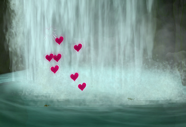 Nur die Frösche wissen, was dort im Wasserfall geschehen ist.
