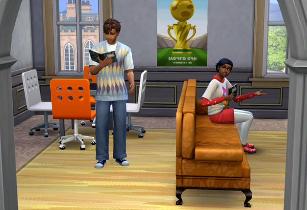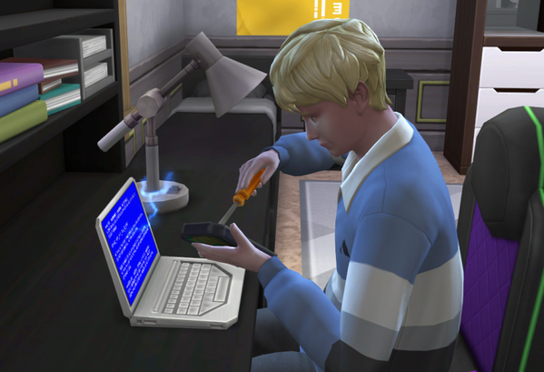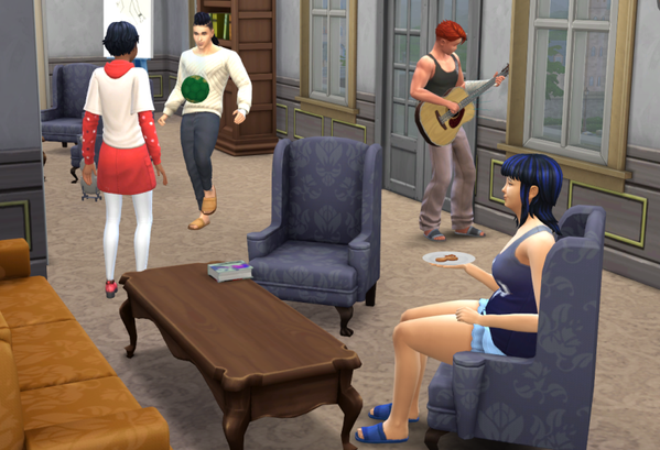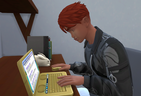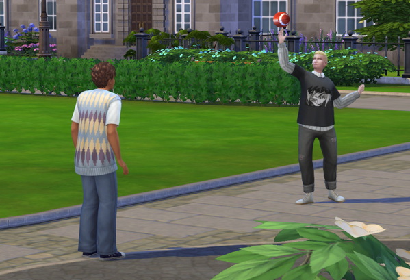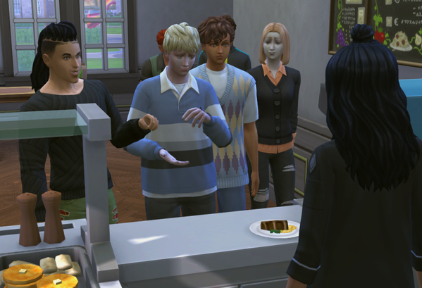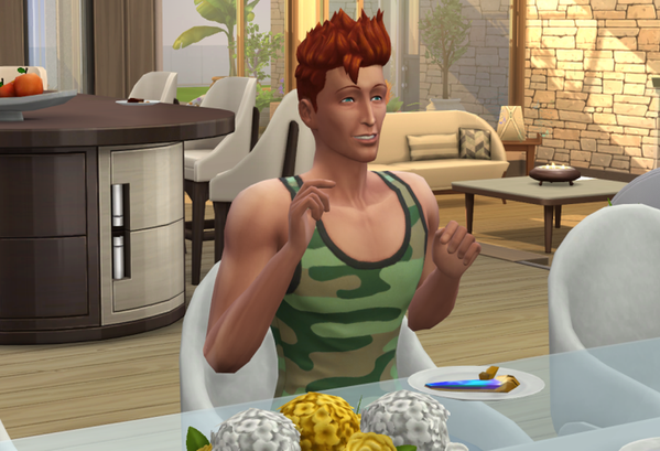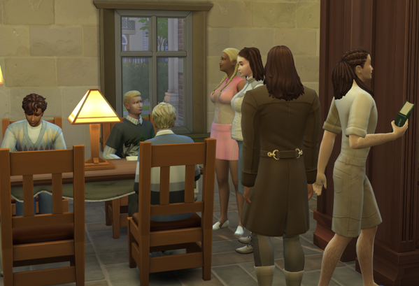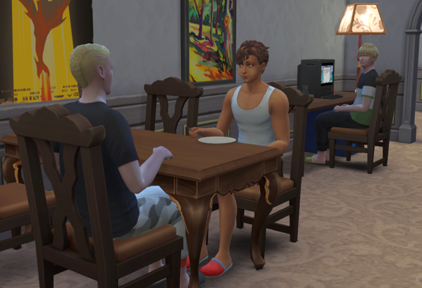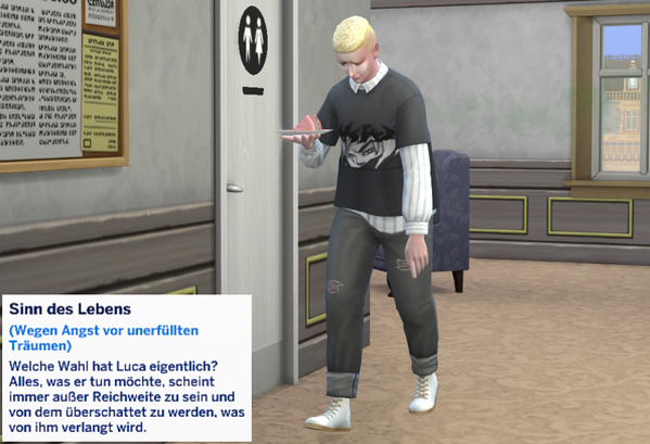 Außer meinen acht Sims leben noch zwei NPCs im Wohnheim, einer davon, Timo Davis,