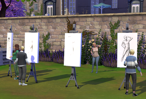 Doch dann entdecken sie, dass dort ein Modell posiert greifen sie sofort zum Pinsel und zeigen, was sie drauf haben.