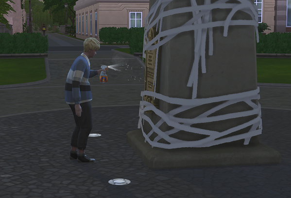 Und wenn er schon mal hier ist, sorgt er auch gleich dafür, dass die Statue wieder sauber ist.
