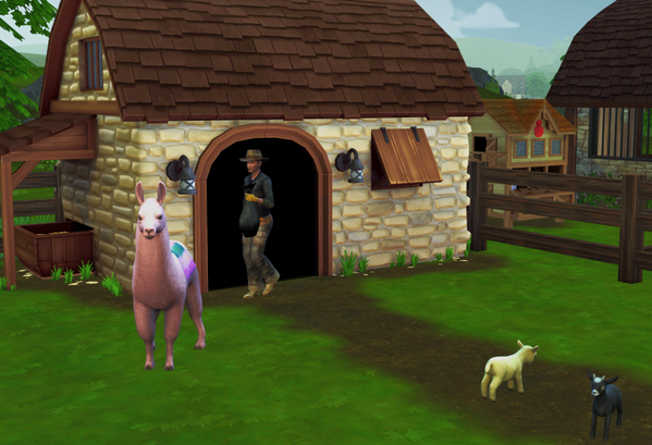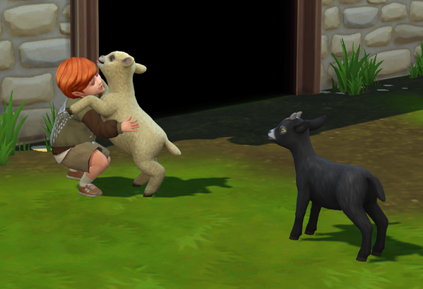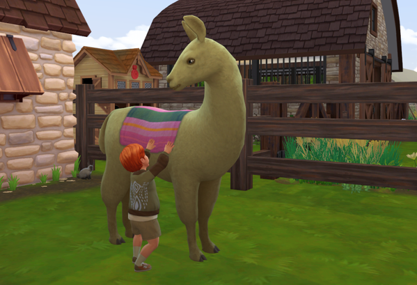 Später entdeckt er noch mehr lustige Tiere vor dem Stall des Lamas.