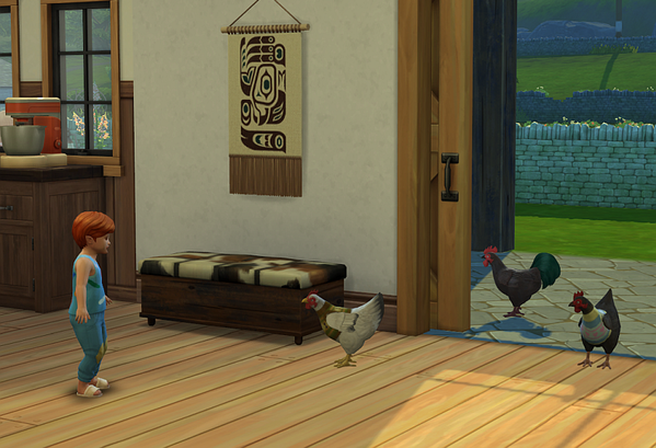 Am nächsten Morgen wird er zwar nicht von den Hühnern geweckt, aber diese kommen oft bis ins Haus.