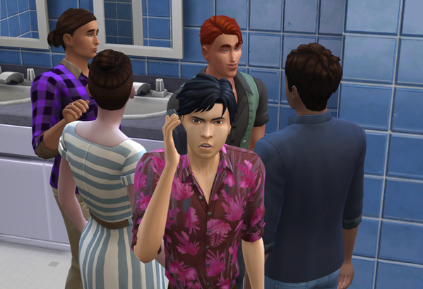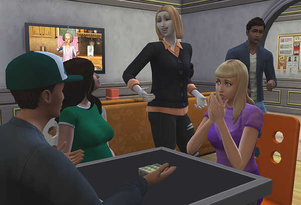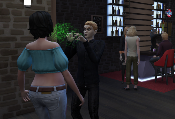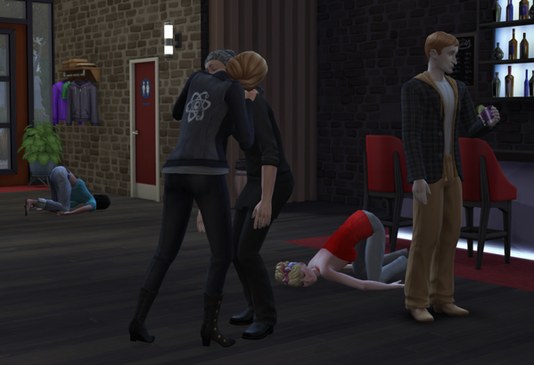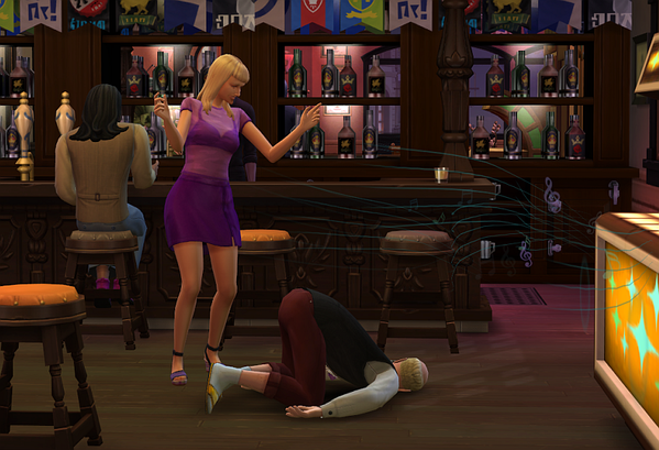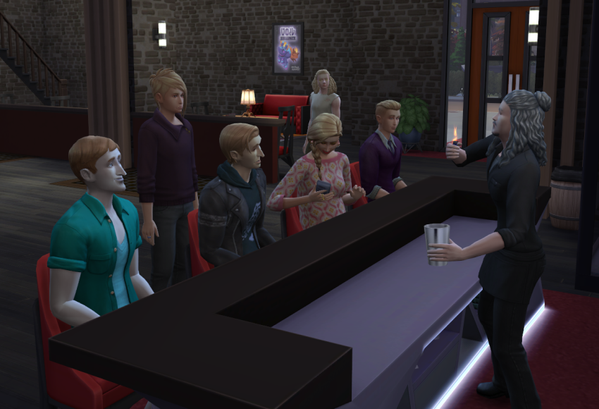 Im Laufe des Abends werden noch weitere Sims zu Ader gelassen, auch der Barkeeper muss daran glauben.