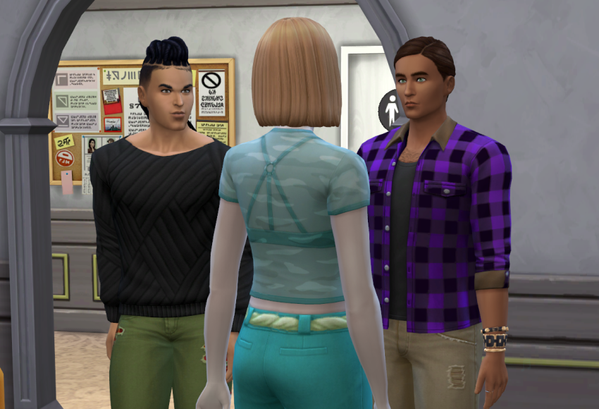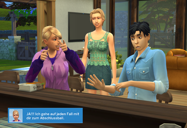 Aline, Thorne und Sophie allein mit vielen NPCs im Wohnheim,