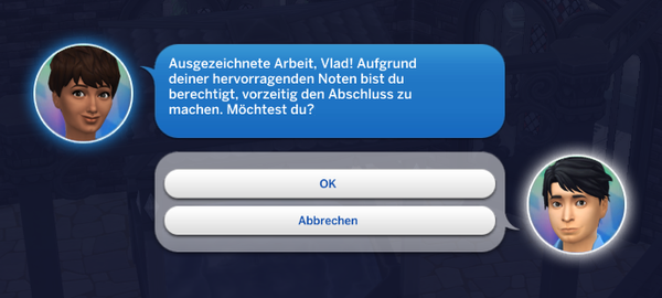 Damian könnte sogar den Abschluss vorziehen, entscheidet sich aber dagegen.