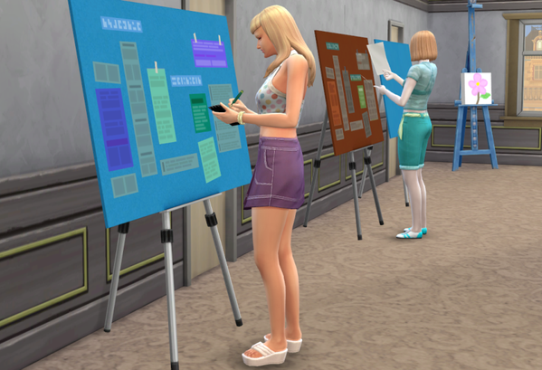 Die Mädchen sind davon unbeeindruckt und beschäftigen sich lieber mit ihren Präsentationstafeln. ;)