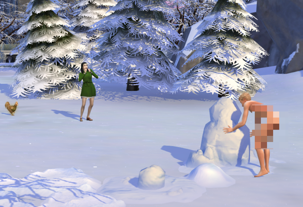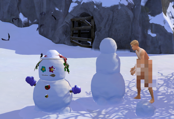 ... und baut am helllichten Tag im Adamskostüm Schneemänner.