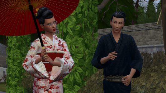 Fuhihiko war nicht auf den Kopf gefallen und konnte alle Fragen von Ampithride beantworten. Nach dem Gespräch schlug die Obaasan vor, dass sich beide "Brautleute" zu einem Spaziergang in den Gärten von Chalets treffen sollten. Beide Sims stimmten den Vorschlag zu. So kam es, dass Kiyoshi und Fuhihiko sich die kommenden Tage in den Gärten von Chalets trafen.