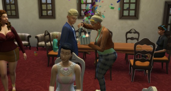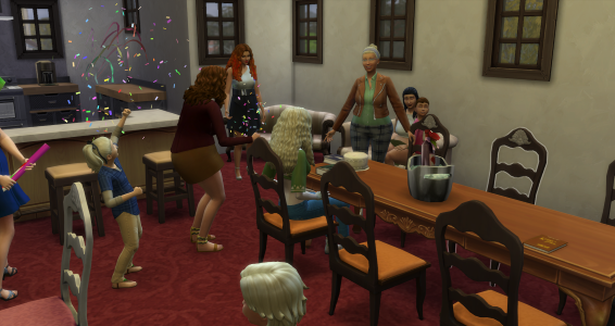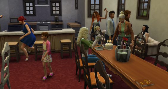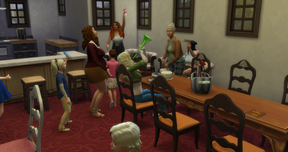 Lang lang ist es her, das ich hier berichtete und doch lagen diese Ereignisse die nun folgen gar nicht so weit auseinander. Obwohl… wenn man es genau sieht… es ist ein ganzes Simleben von dem ich hier erzähle. Und ein solche ist schon mal eine gewisse Ewigkeit. Wir erinnern uns zurück an Theos Lustig Geburtstagsfeier. Kurz nach ihm feiert seine Frau Freyja Lustig ihren Geburtstag. Da sie an diesem Tag nicht selbst kochen und servieren möchte, feiern sie im Gemeindehaus oberhalb der Kirche, gleich in der Nachbarschaft.