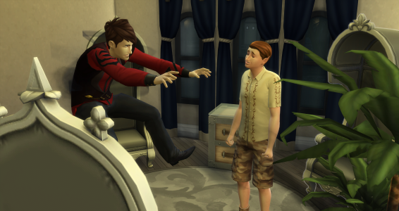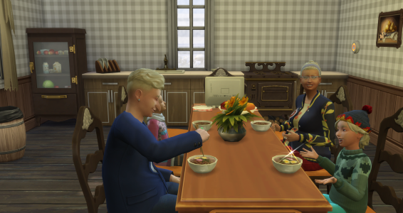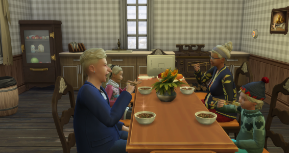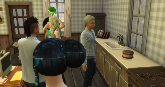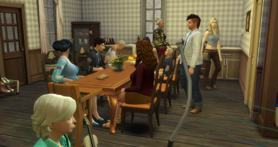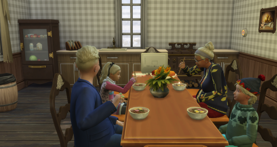 Ich wollte ja mal in der RPG-Gruppe mitmachen, doch parallel zu spielen ist nicht einfach für mich, da ich ja alle Sims ohne freien Willen spiele und jeder braucht eine Geschichte. Selbst rotierend spielen wäre für mich NoGo. So klinke ich mich dann aber in die Geschichten ganz blind ein und irgendwann macht es dann auch klick. Und hier dann bestimmt auch :) ))