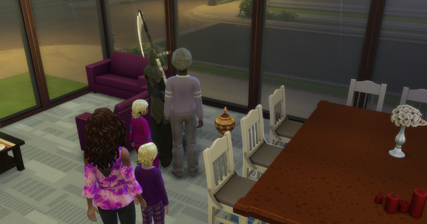 Der Sensemann vollbrachte ohne jede Regung oder Mitgefühl sein Werk und hinterließ der Familie lediglich eine Urne. Die Familie erstarrte bei diesem Anblick.