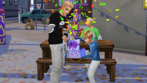 Einen Tag vor Halloween waren Elias, Feonor und die Kids in San Myshuno und hatten auch viel Spaß. Besonders Elias^^