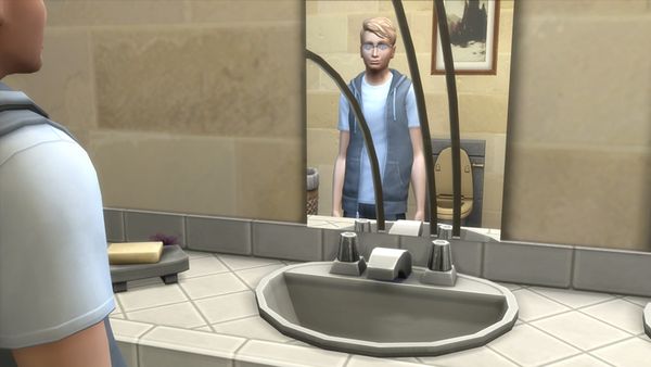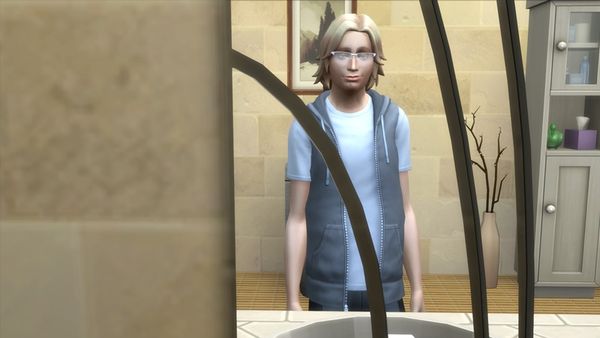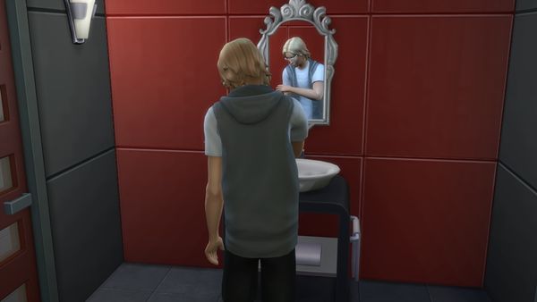 Nachdem Sara zwischenzeitlich nach Hause musste, ging Samuel ins Bad und schaute sich im Spiegel an. "Gott, sehe ich blöd aus. Diese Pickel. Diese Haare. So mag mich Sara bestimmt nicht!"