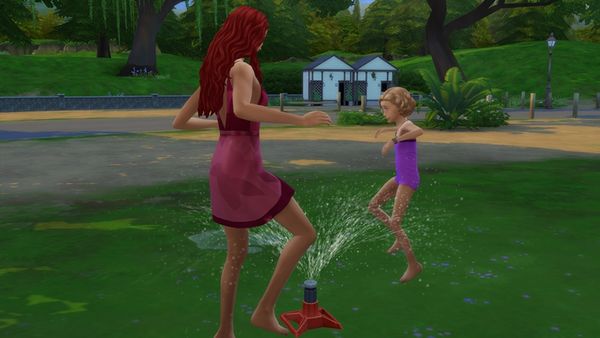 Kim wurde es doch ein bisschen heikel beim Rollschuhfahren, und dann entdeckte sie einen Sprinkler, der irgendwie interessanter wurde. Sie lachte irgendwie durch den ganzen Park. Das ließ sich Amethysia dann auch nicht entgehen. Auch sie hatte riesen Spaß.