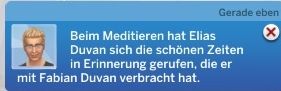 Ich fand einen Text auch noch ganz cool, den Elias beim meditieren bekam. Er musste an die schöne Zeit mit seinem Vater denken, der nun mittlerweile lustigerweise fast genau ein Simjahr tot ist. - Julchens774 years agoSeasoned AceJa, so ein kleines Baby kann gut auf Trab halten - schön, dass sich die Eltern bei der Pflege abwechseln. Währenddessen vergnügen sich die Eltern unter der Bettdecke... und Sam hat scheinbar seine Krise überwunden. Sara freut's. :D Die Erinnerung von Elias ist schön. <3