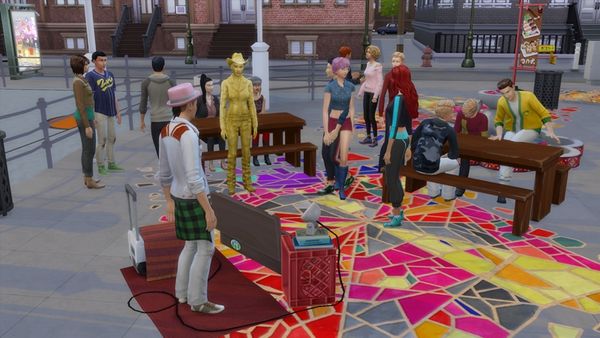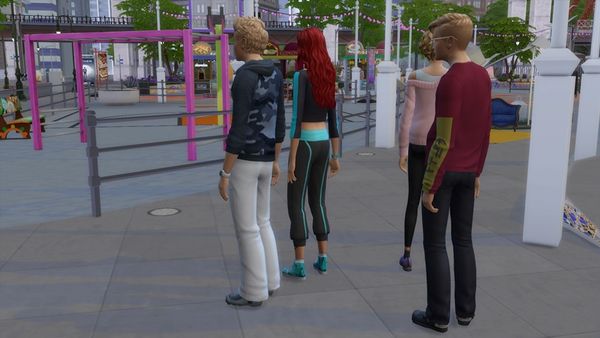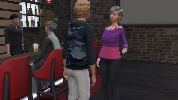 Marcel, Kim. Amethysia und Sam haben beschlossen nach San Myshuno auf den Flohmarkt zu gehen. Auch Micha ist mit im Gepäck, doch dieser will sich noch kurz in der Karaokerbar nebenan umschauen