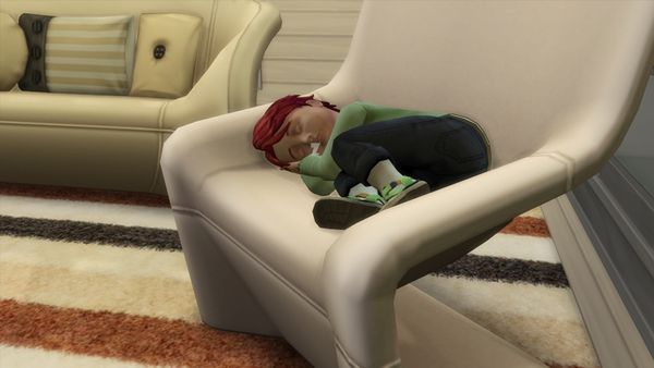 Alex stört der ganze Liebeswahn gar nicht und gönnt sich ein Nickerchen auf dem Sessel ...