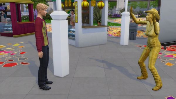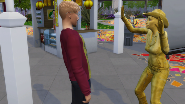 Also muss sich Sam ohne Anhang sinnvoll beschäftigen. "Oh, eine lebendige Statue. Cool."