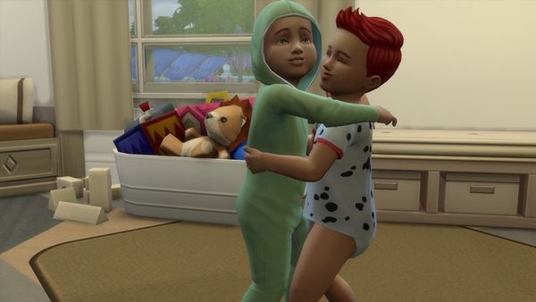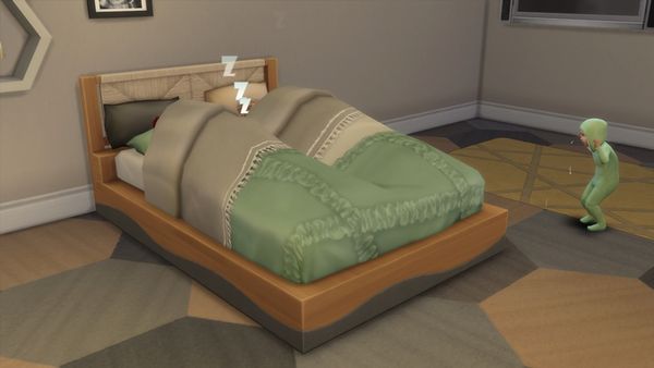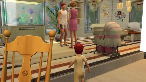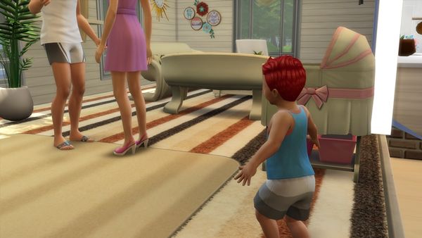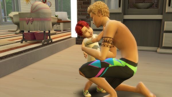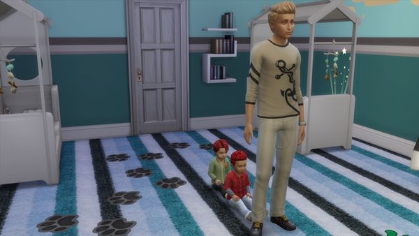 Marcel kümmert sich dann um die beiden und bringt sie ins Bett. Da ich ja meine Sims immer hin und her navigiere (da ich ja jeden manuell spiele) musste ich bei diesem Bild hier schmunzeln, als ich die drei ins Zimmer schickte^^